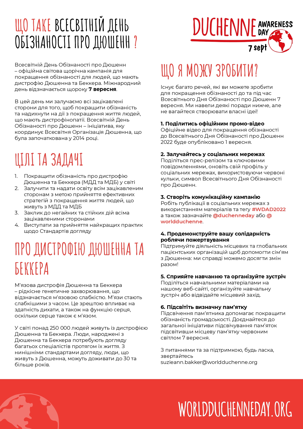 • Всесвітній День Обізнаності про Дюшенн 2022
